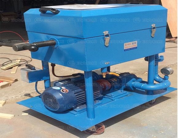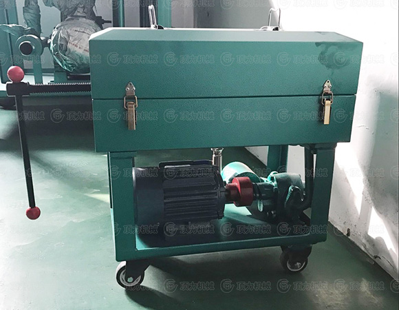 BASY板框濾油機是由齒輪輪泵,濾清器,安全閥,回油閥,濾床,后支架,底盤,拉桿,連軸器,以及電動機等部件組成。齒輪泵,連軸器以及電動機安裝在底盤上,濾請器安裝在齒輪泵的前側。在濾清器上裝有回油閥,濾床安裝在齒輪泵的上方,其中濾板框順序交替組成過濾室。濾紙夾在濾板和濾框的中間。進出油口膠管連接在進出管接頭上,當油液從濾清器進油口處被吸入,通過濾清器排除掉較大的顆粒雜志后,在進入齒輪泵。齒輪泵在電機的帶動下旋轉產生擠壓力,使油液進入濾床,滲透出濾紙將油液雜志濾凈。然后將油液從出油管排除出。當油壓超過規定值時。安全閥就立刻啟動,使油液在油泵中自行循環,油壓不再上升,以確保設備的安全,油樣閥供取油樣進行耐壓及其他理化性能的實驗。本機采用底盤滾輪結構??梢酝ㄟ^人力拉動拉桿移動。