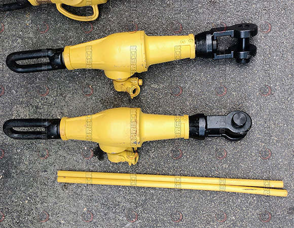 7、工作完畢,可將撐牙推向套筒上升方向,再插入手柄往返扳動,待松后再將拉力機取下。
